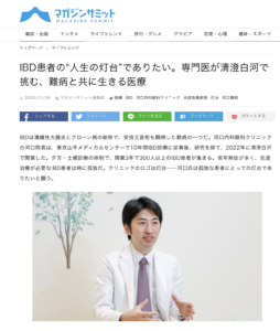 国の指定難病である炎症性腸疾患に対する河口院長の診療への想いが紹介されています。